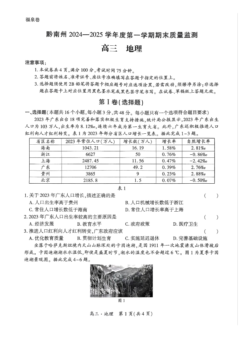 黔南州2024-2025学年度第一学期期末质量监测 地理.pdf