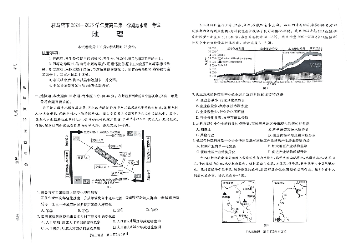 河南省驻马店市2025届高三1月期末联考 地理.pdf