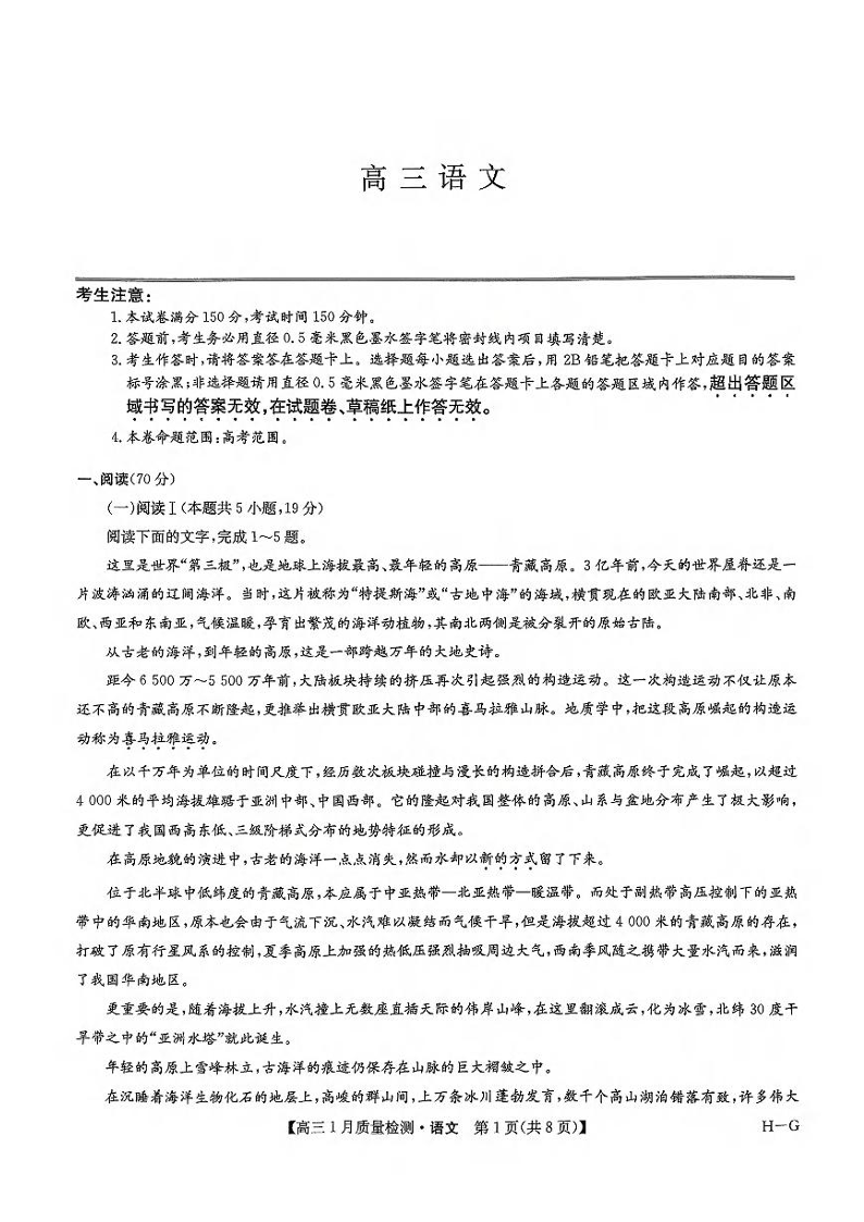 九师联盟2025届高三上学期1月期末考试 语文.pdf