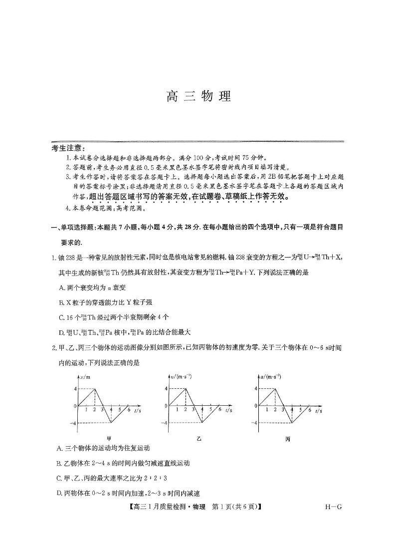 九师联盟2025届高三上学期1月期末考试 物理.pdf