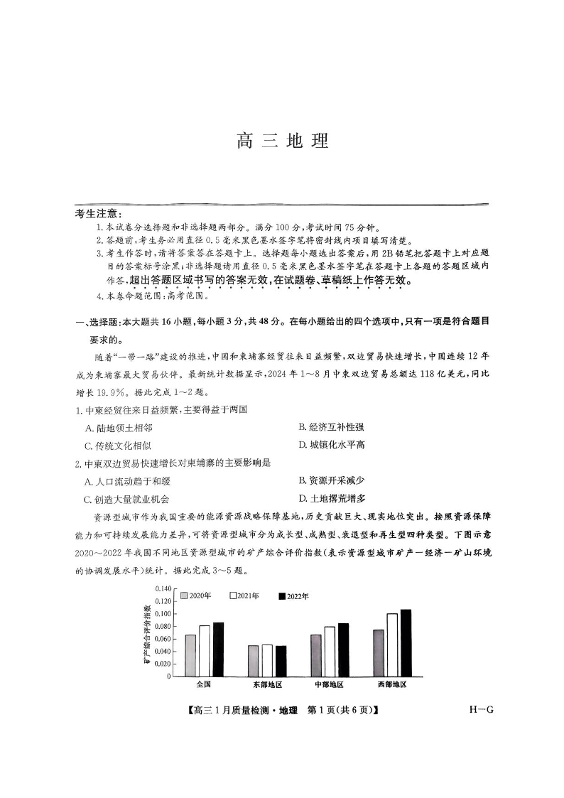 九师联盟2025届高三上学期1月期末考试 地理.pdf