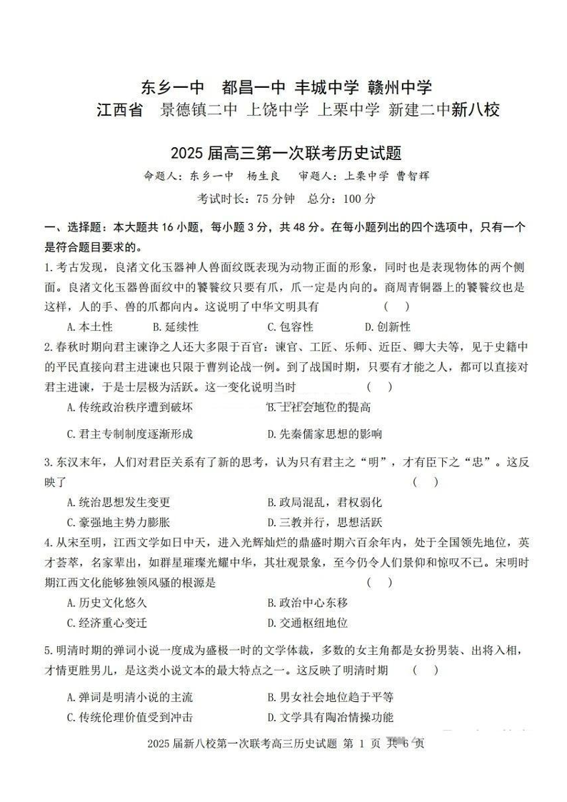 江西省新八校2025届高三第一次联考 历史.pdf