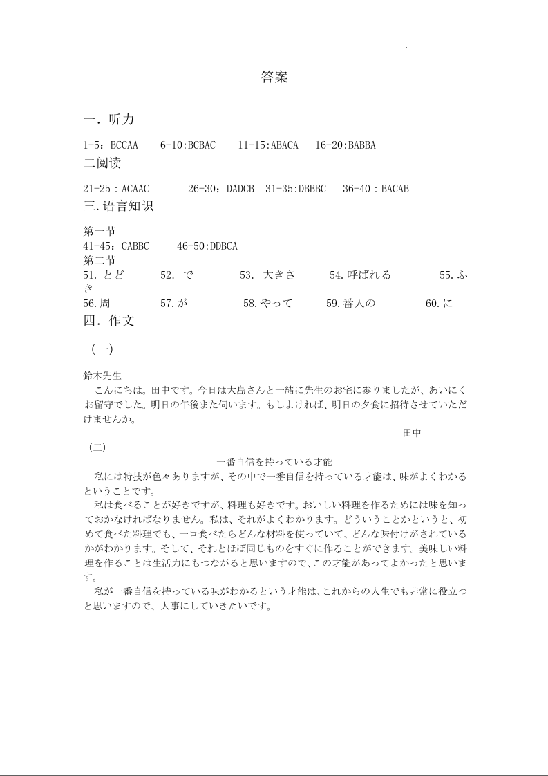 山西省三晋卓越联盟2025届高三上学期期末质量检测 日语答案.docx