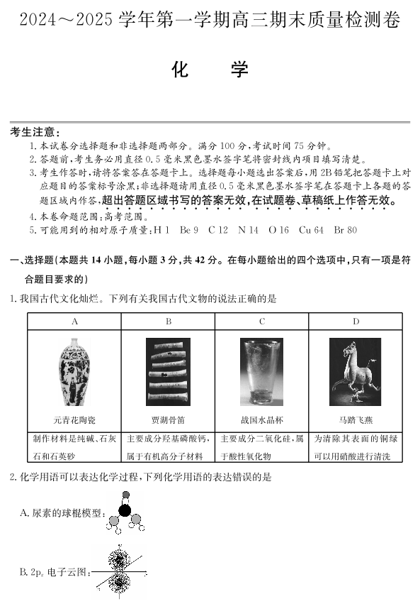 山西省三晋卓越联盟2025届高三上学期期末质量检测 化学.pdf
