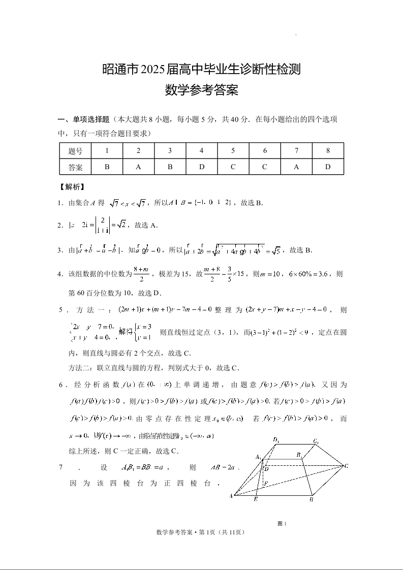 昭通市2025届高中毕业生诊断性检测数学-答案.docx