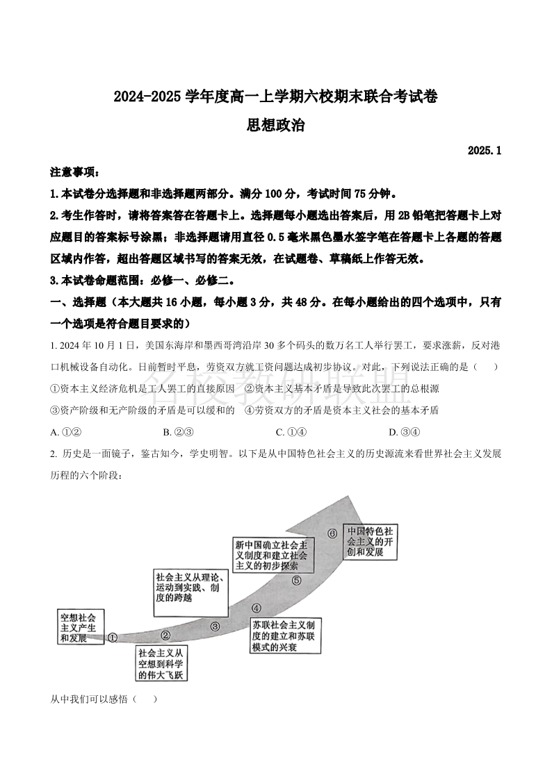黑龙江省哈尔滨市六校2024-2025学年高一上学期期末联考试题 政治.pdf