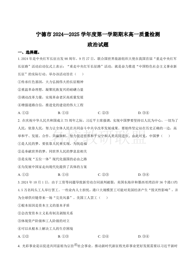 福建省宁德市2024-2025学年高一上学期1月期末考试 政治.pdf