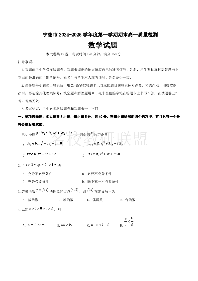 福建省宁德市2024-2025学年高一上学期1月期末考试 数学.pdf