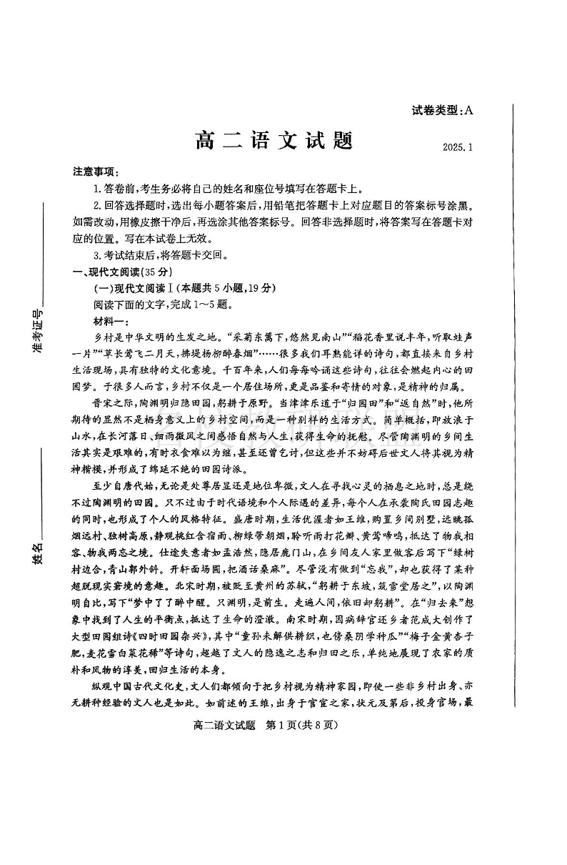 山东省滨州市2024-2025学年高二上学期期末考试 语文.pdf
