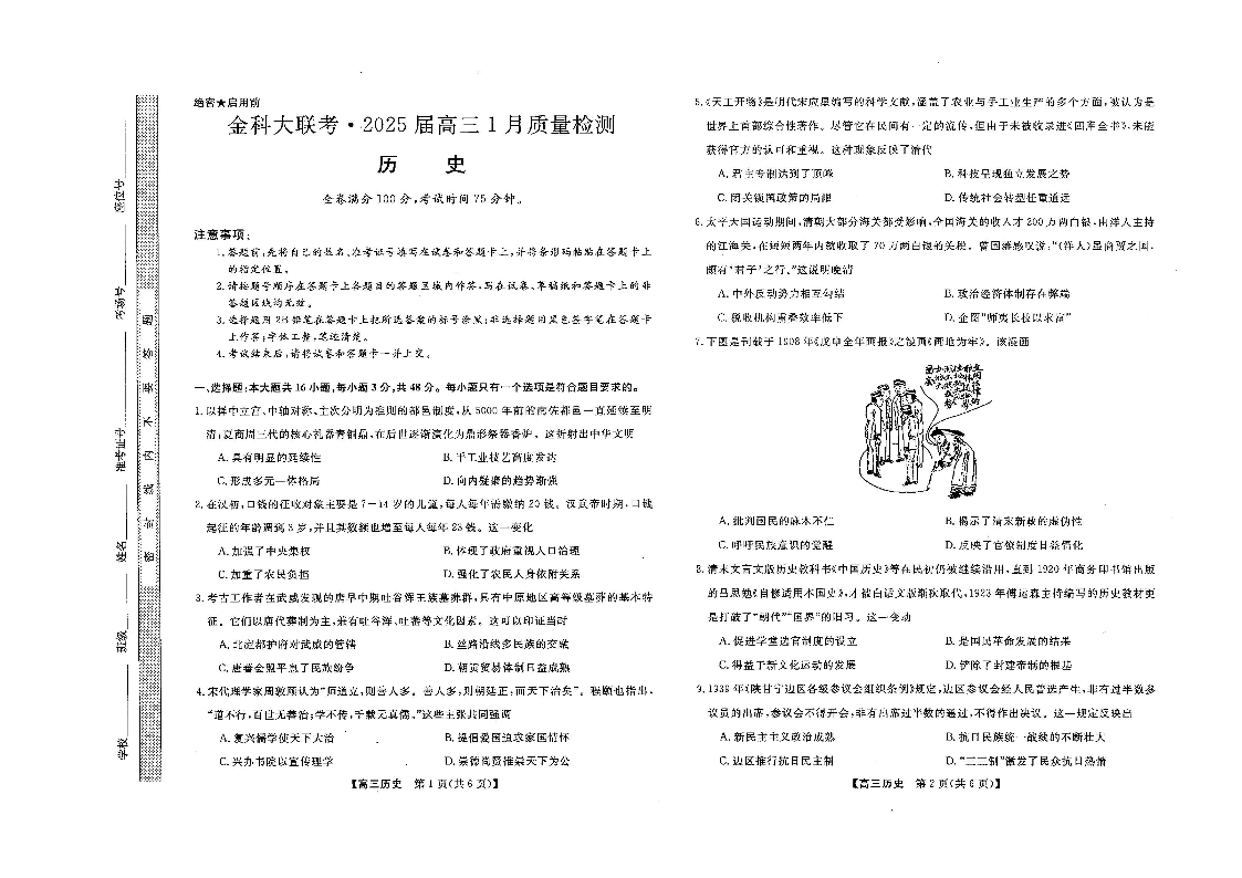 山西省金科大联考2025届高三1月质量检测 历史.pdf