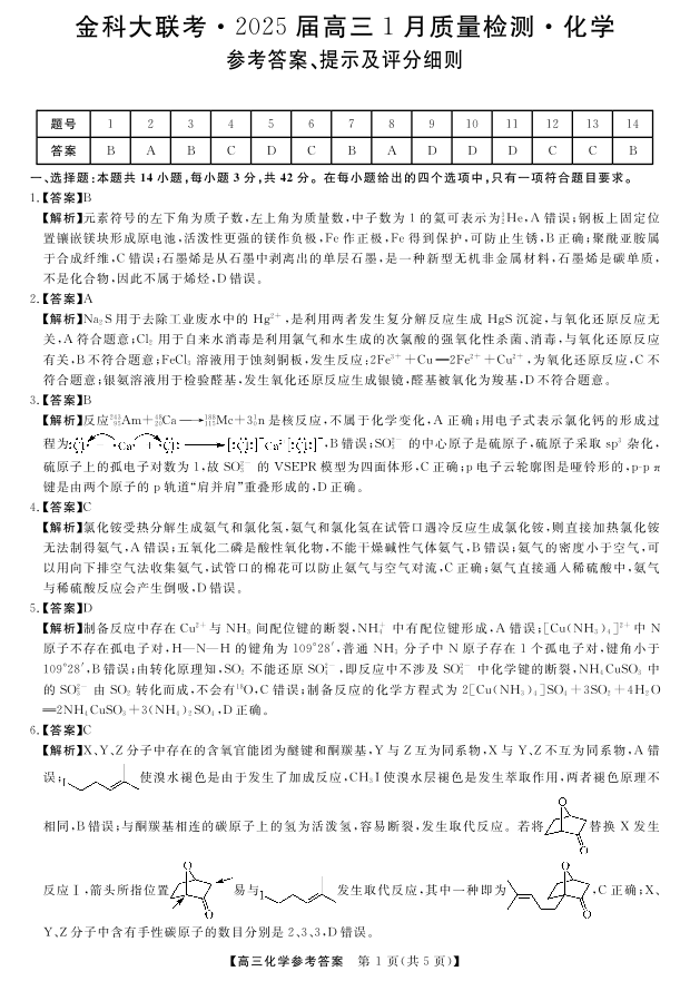 山西省金科大联考2025届高三1月质量检测 化学答案.pdf