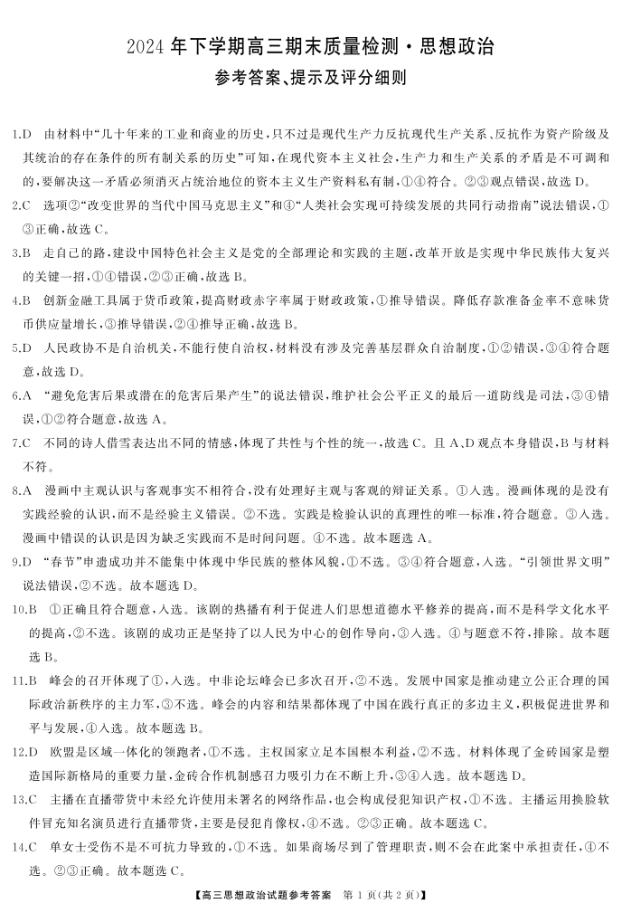 高三政治答案.pdf