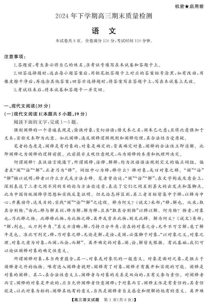 2024年下学期高三期末质量检测-语文.pdf