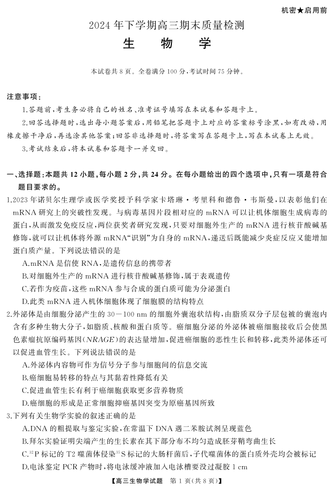 2024年下学期高三期末质量检测-生物.pdf