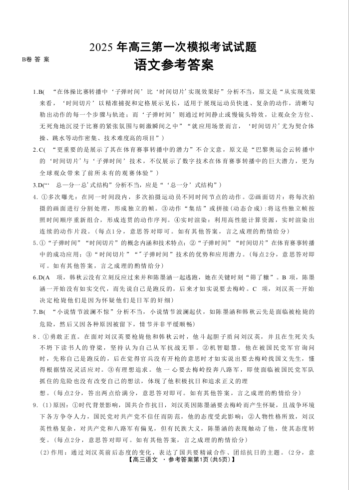 山西省晋城市2025年高三年级第一次模拟考试 语文答案.docx