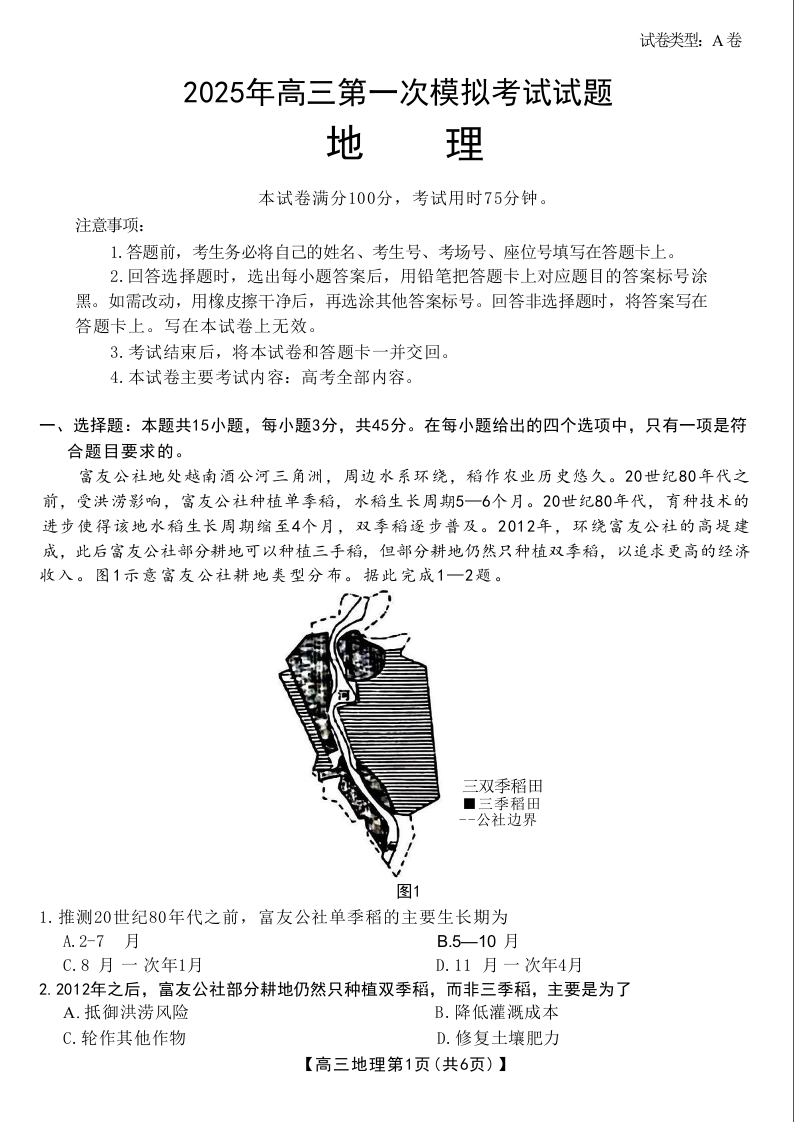 山西省晋城市2025年高三年级第一次模拟考试 地理.docx