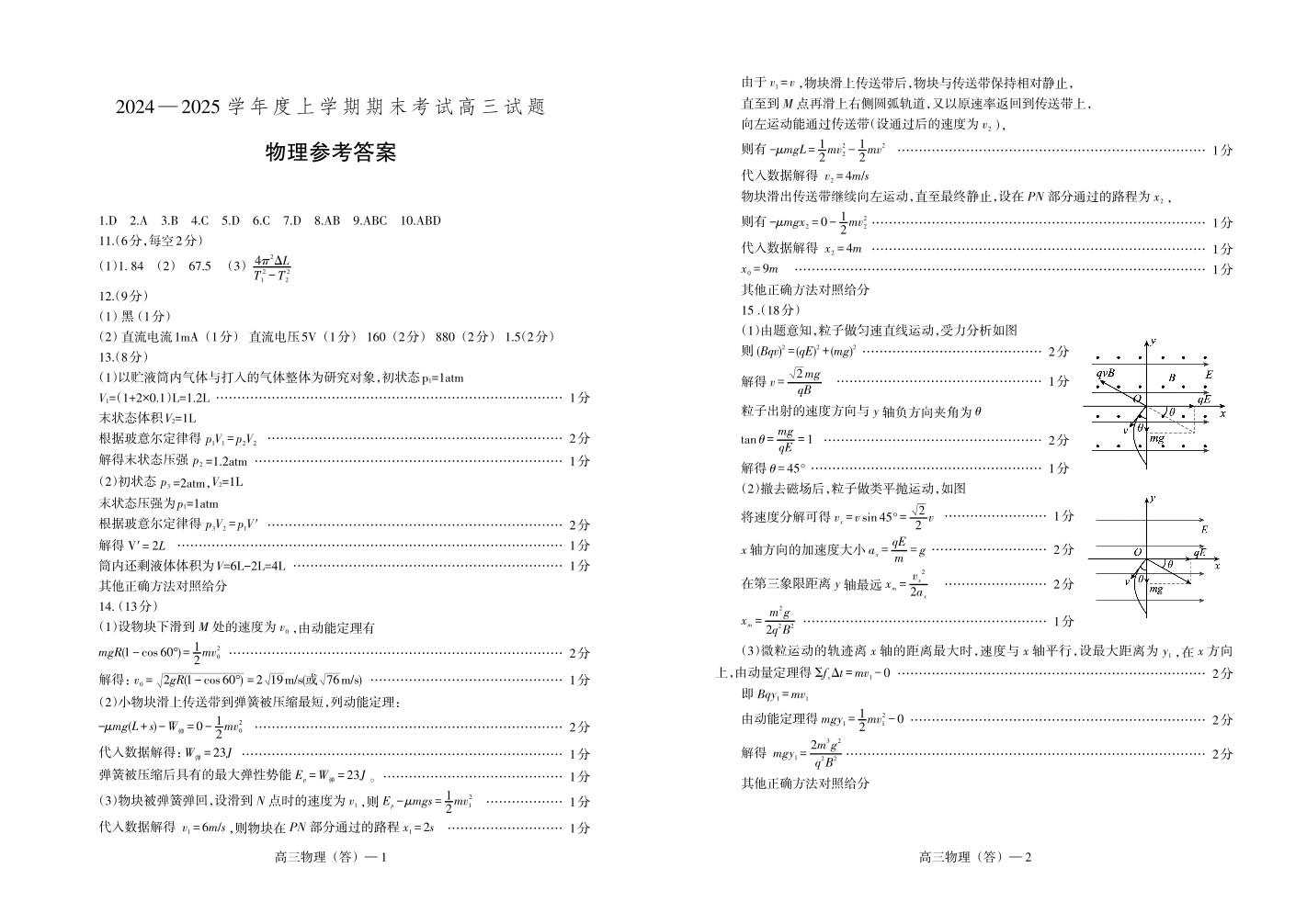 2024-2025上学期辽宁省重点中学协作校联考高三 物理答案.pdf