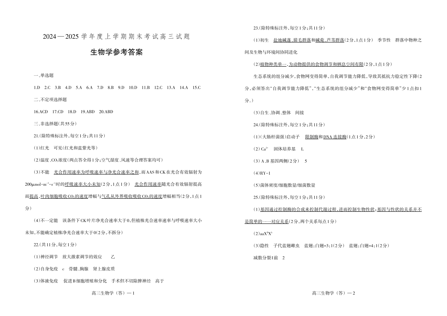 2024-2025上学期辽宁省重点中学协作校联考高三 生物答案.pdf