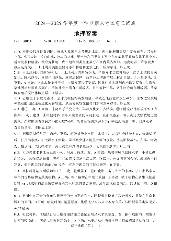 2024-2025上学期辽宁省重点中学协作校联考高三 地理答案.pdf