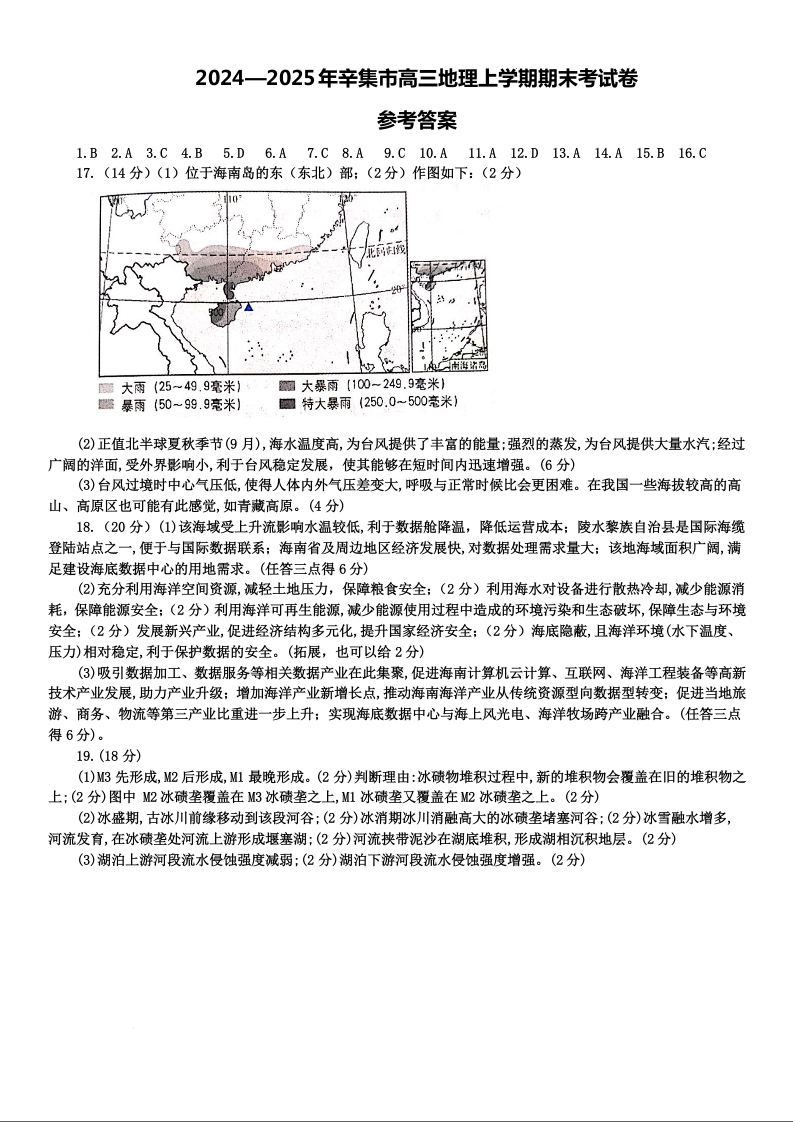 河北省石家庄市辛集市2025届高三上学期1月期末考试 地理答案.docx