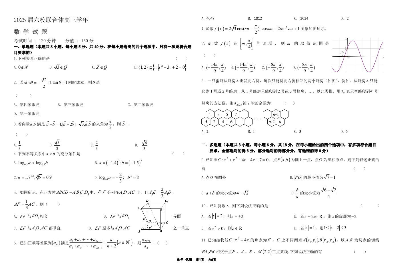 黑龙江省“六校联盟”2025届高三上学期联合适应性考试 数学(含答案).pdf