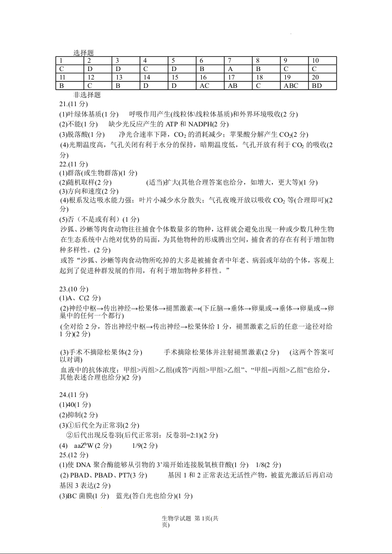 黑龙江省“六校联盟”2025届高三上学期联合适应性考试 生物答案.docx
