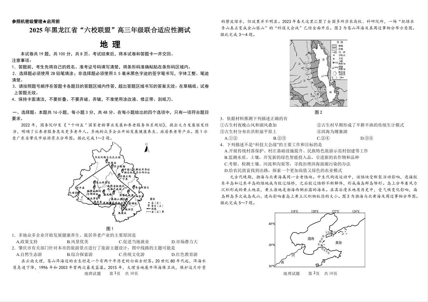 黑龙江省“六校联盟”2025届高三上学期联合适应性考试 地理(含答案).docx