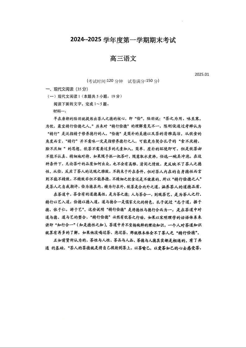 山东省青岛市2025届高三第一学期期末考试 语文(含答案).docx