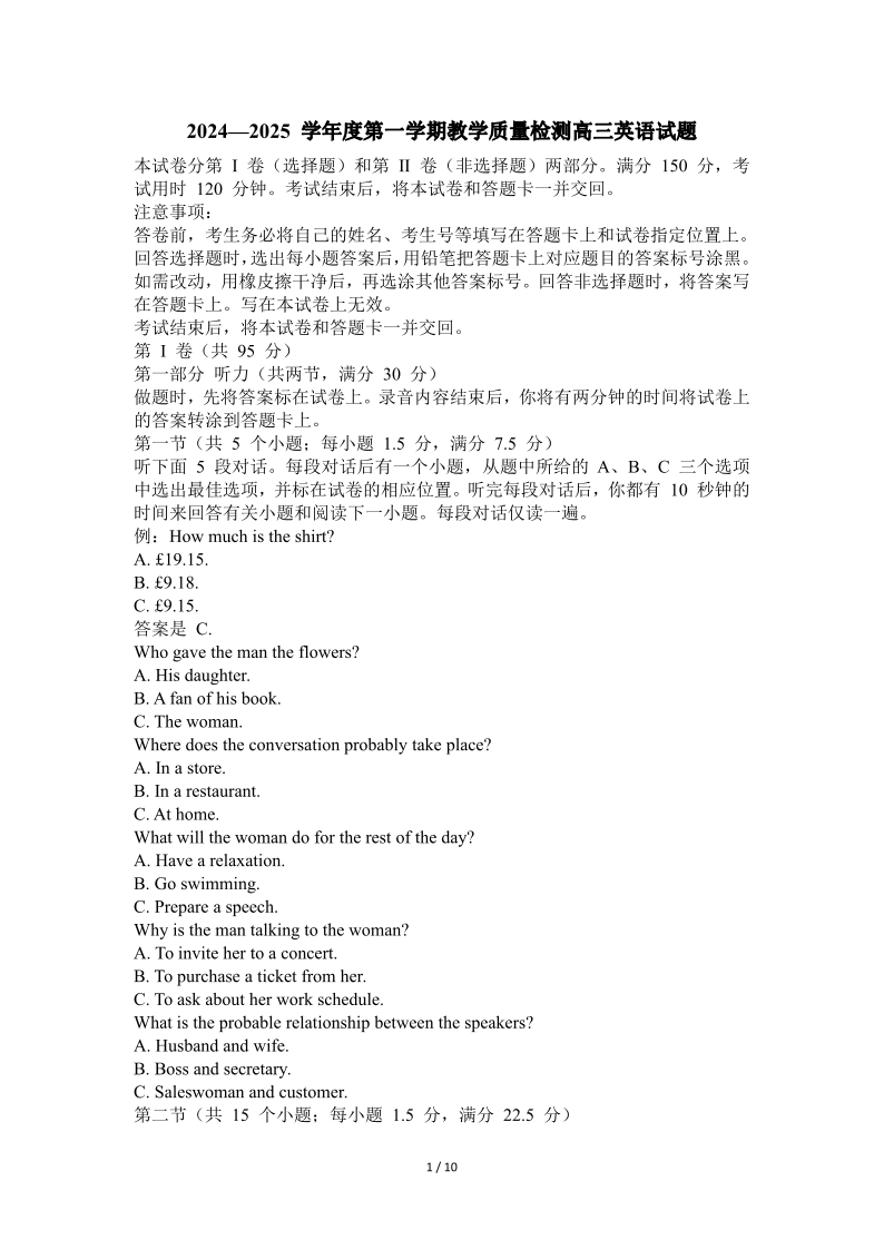 山东省青岛市2025届高三第一学期期末考试 英语.pdf