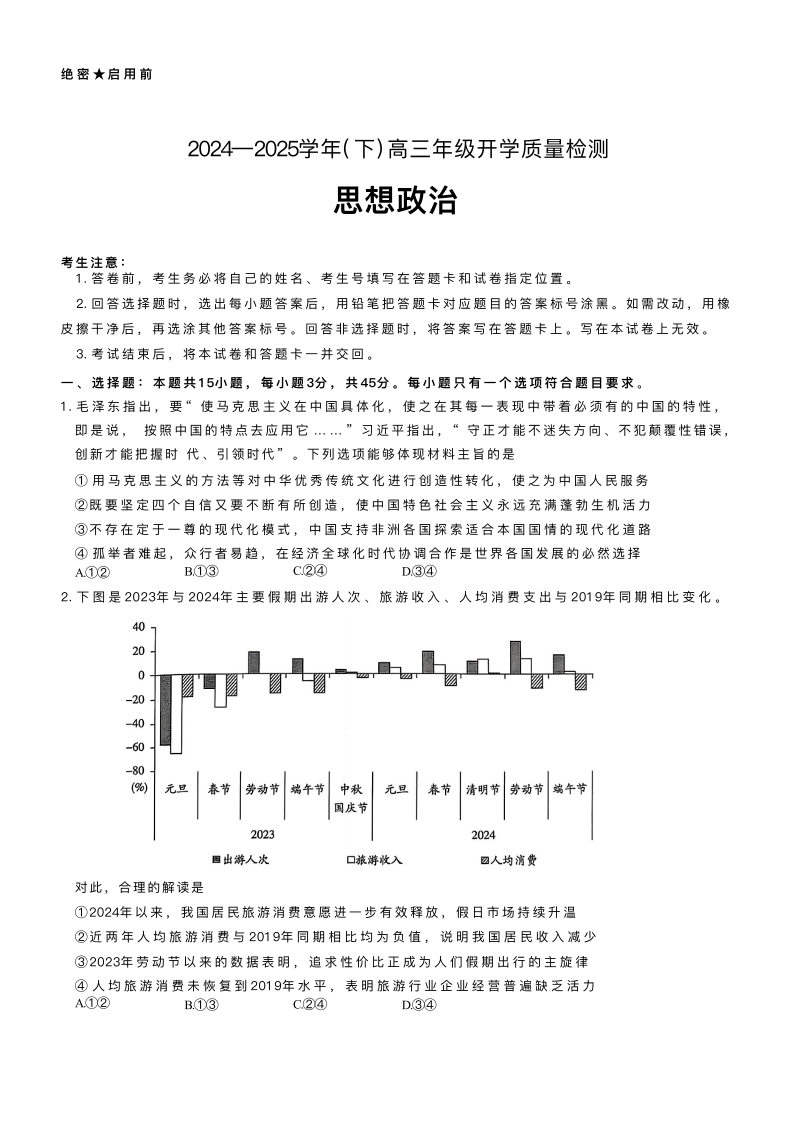 山东省名校教研共同体2024-2025学年高三下学期开学考试 政治( 含答案).pdf