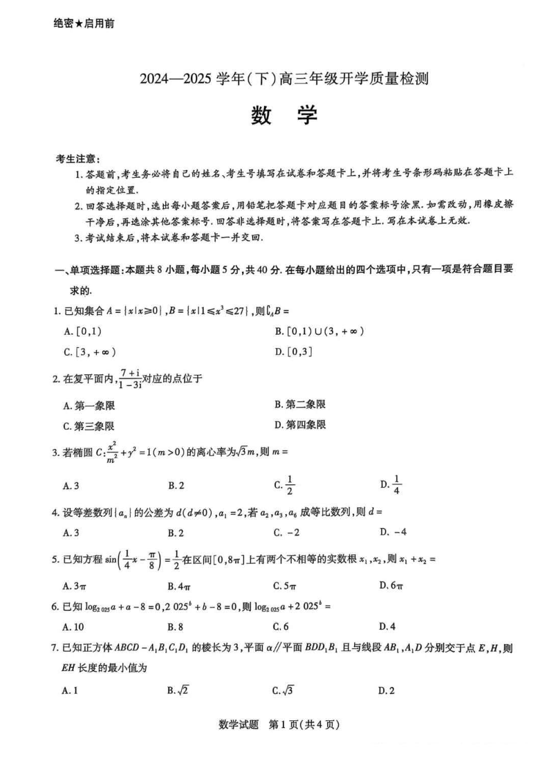 山东省名校教研共同体2024-2025学年高三下学期开学考试 数学答案.pdf