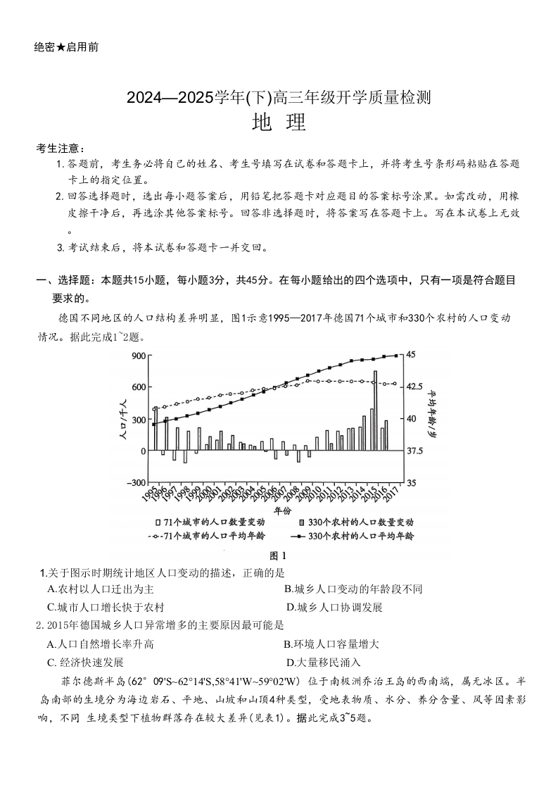 山东省名校教研共同体2024-2025学年高三下学期开学考试 地理( 含答案).docx