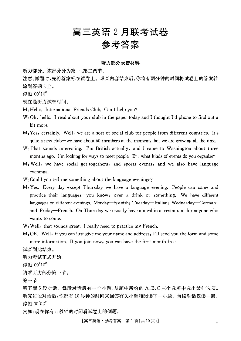 【英语答案】2025届高三2月联考.pdf