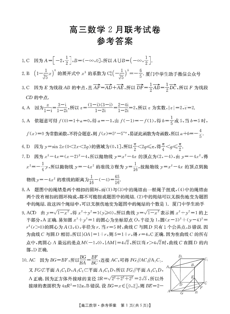 【数学答案】2025届高三2月联考.pdf