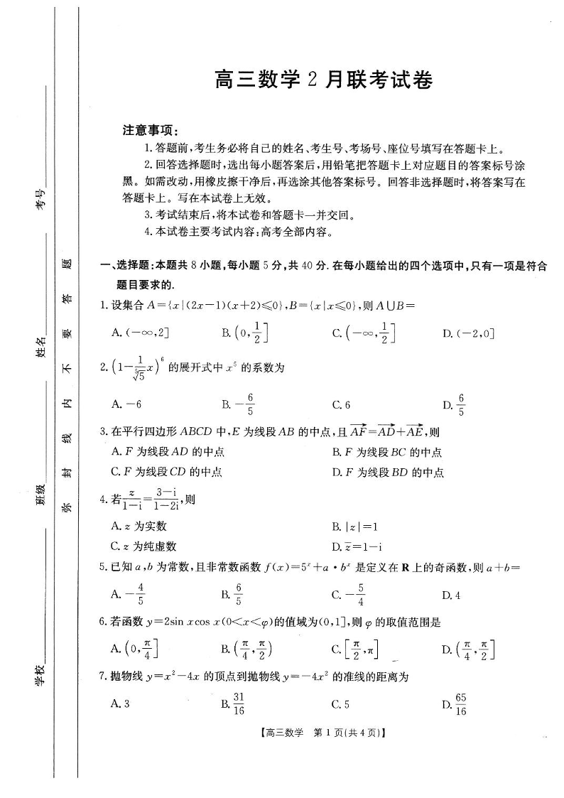 【数学】2025届高三2月联考.pdf
