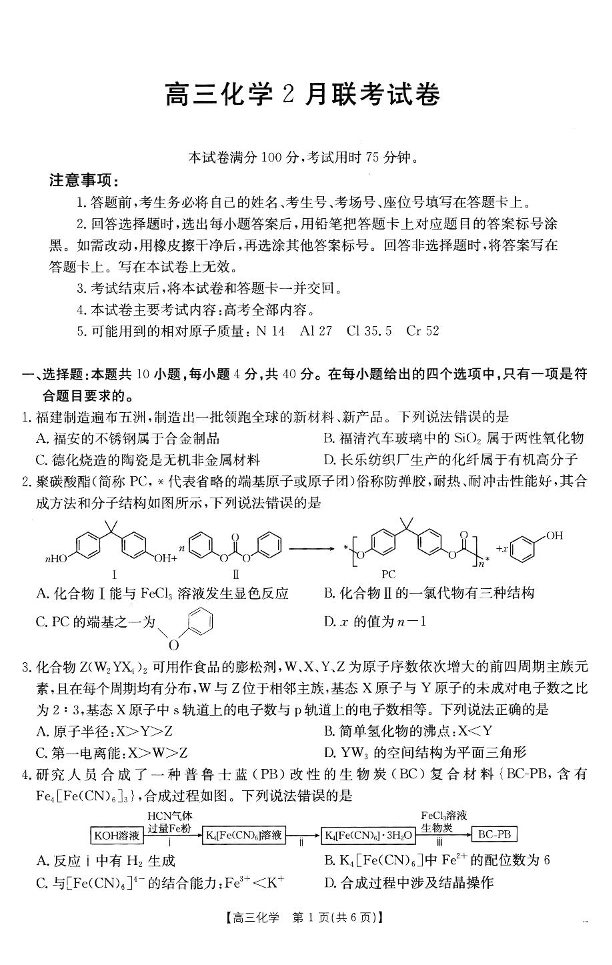 【化学】2025届高三2月联考.pdf