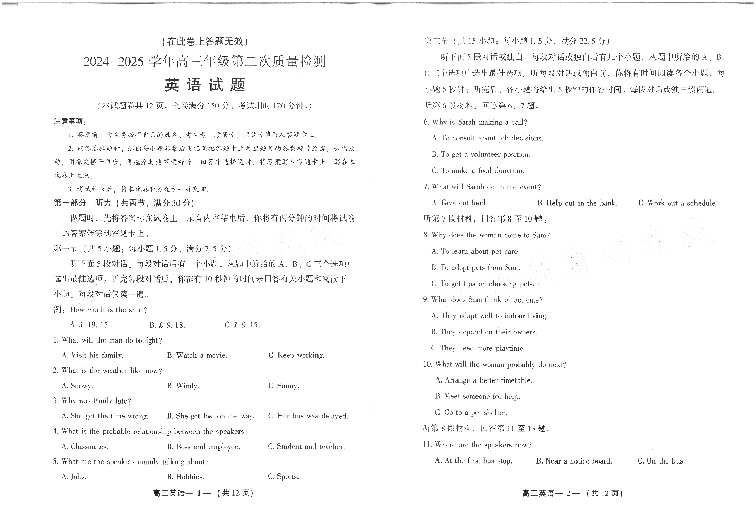 25年福州高三二检 英语.pdf
