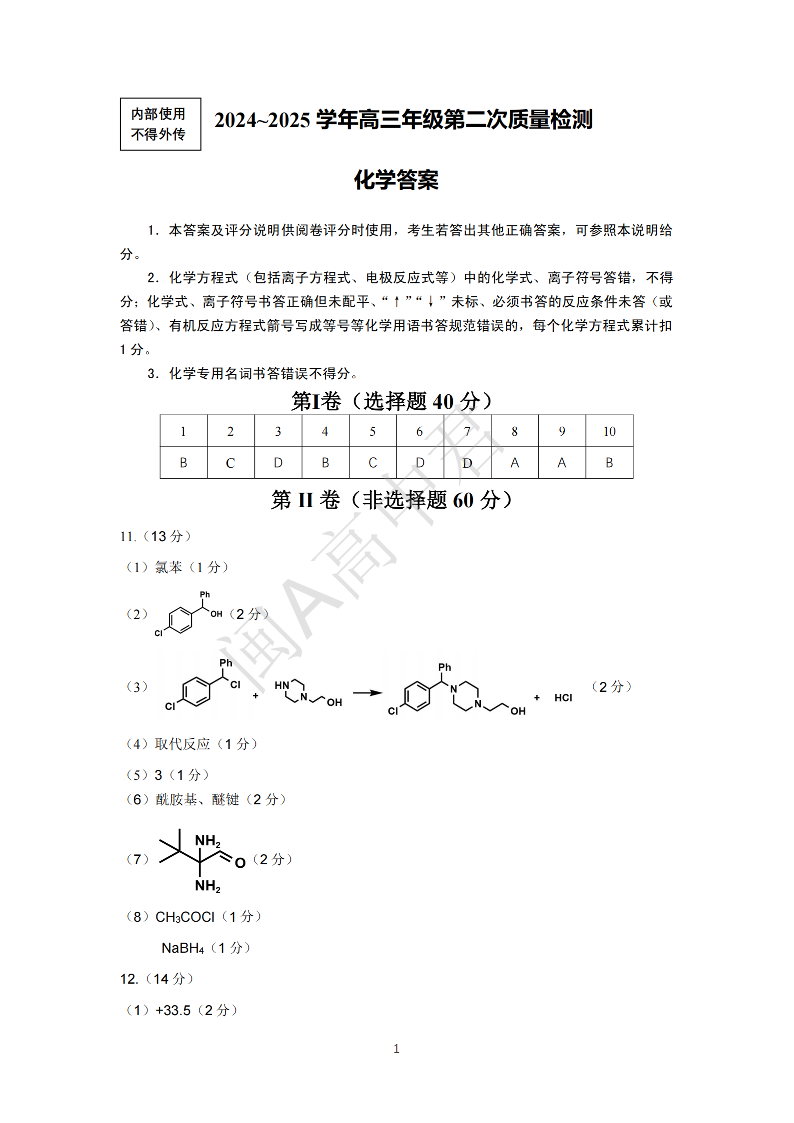 25年福州高三二检 化学答案.pdf
