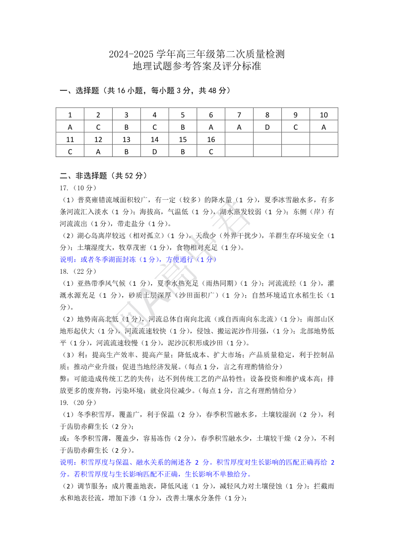 25年福州高三二检 地理答案.pdf