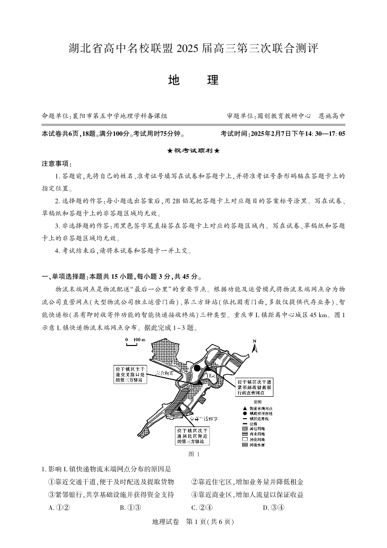 湖北省高中名校联盟2025届高三第三次联合测评 地理.pdf