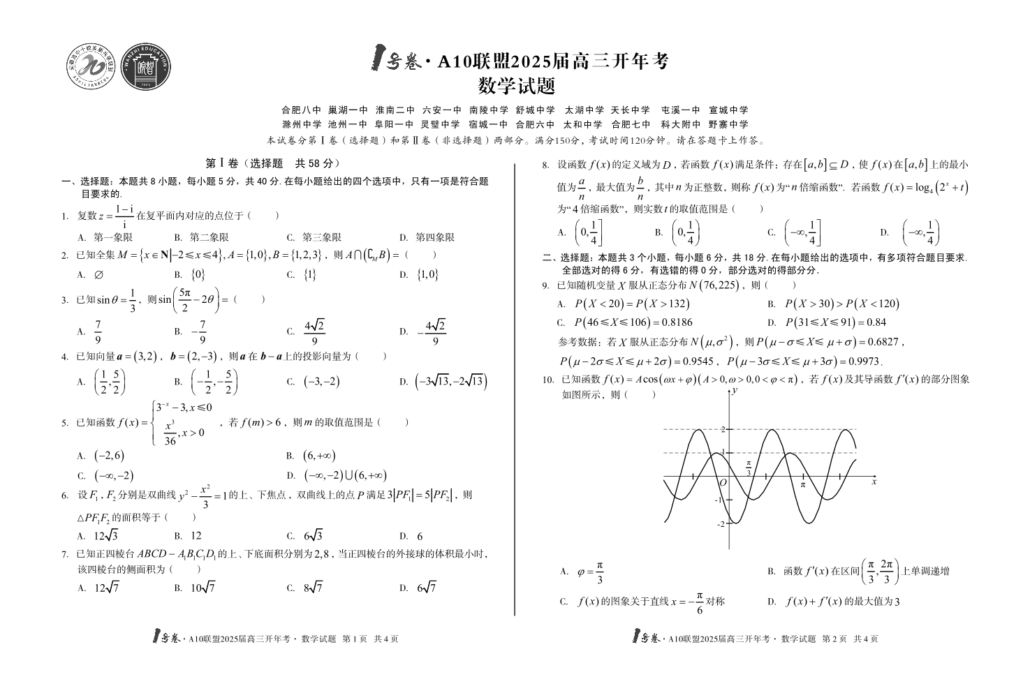1号卷·A10联盟2025届高三开年考 数学.pdf