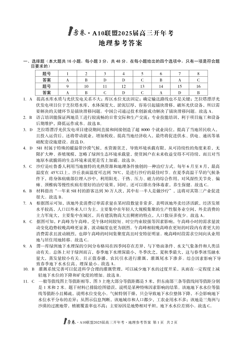 1号卷·A10联盟2025届高三开年考 地理答案.pdf