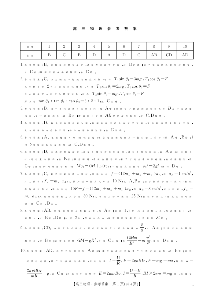 广东省部分学校2025年2月高三年级下学期开学收心考 物理答案.pdf