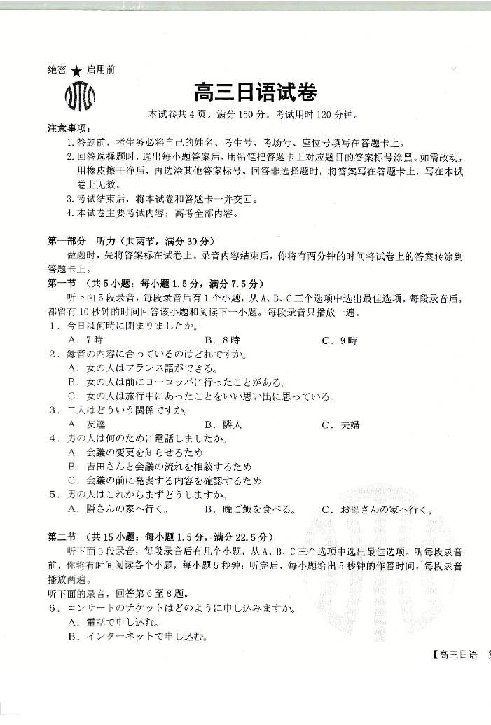 广东省部分学校2025年2月高三年级下学期开学收心考 日语.pdf