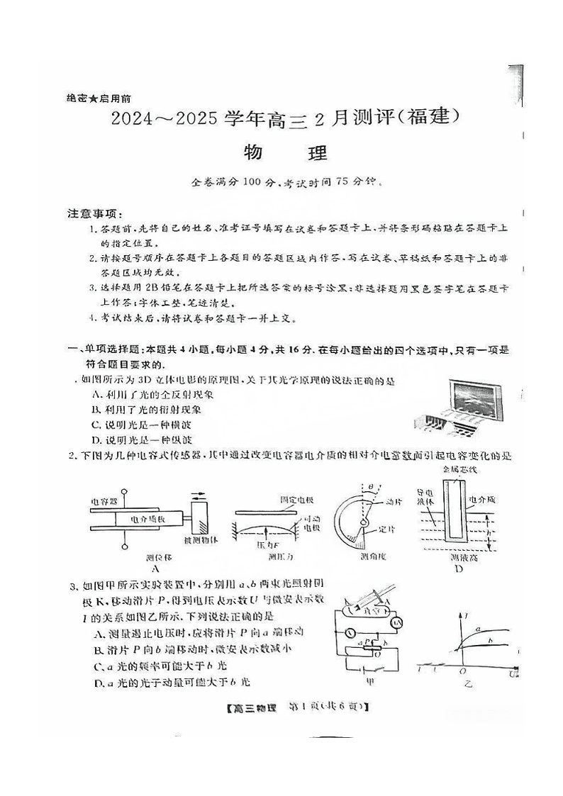 福建省百校联考暨金科大联考2024-2025学年高三二月测评 物理.pdf