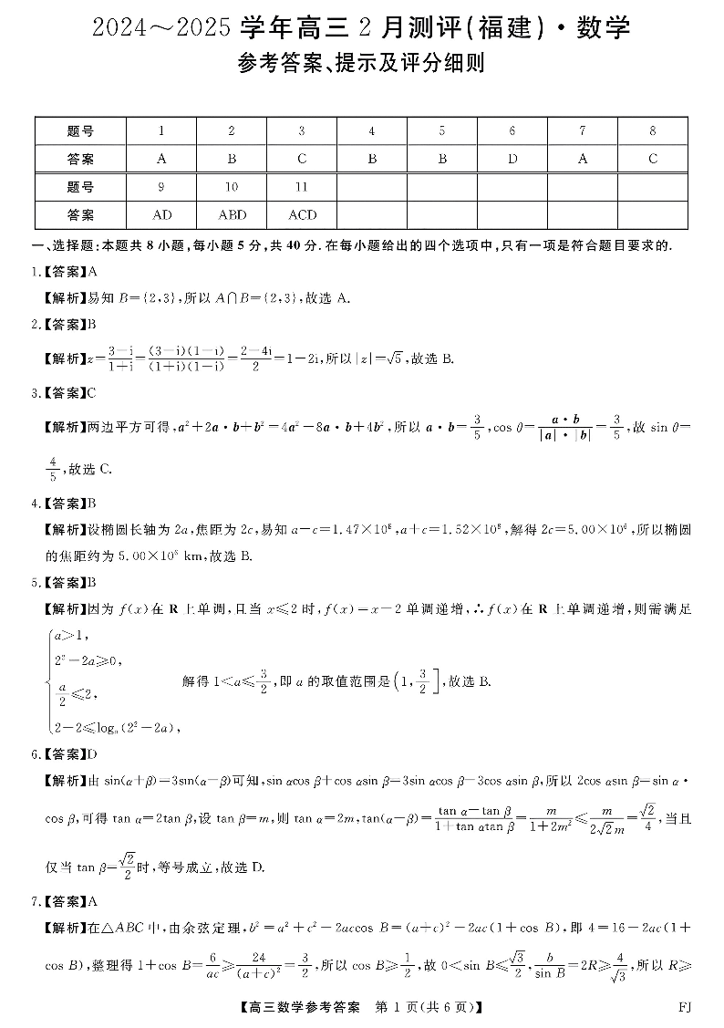 福建省百校联考暨金科大联考2024-2025学年高三二月测评 数学答案.pdf