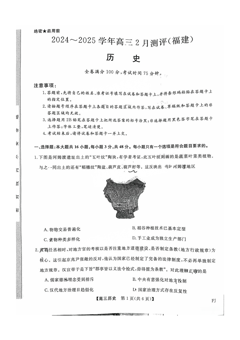 福建省百校联考暨金科大联考2024-2025学年高三二月测评 历史.pdf