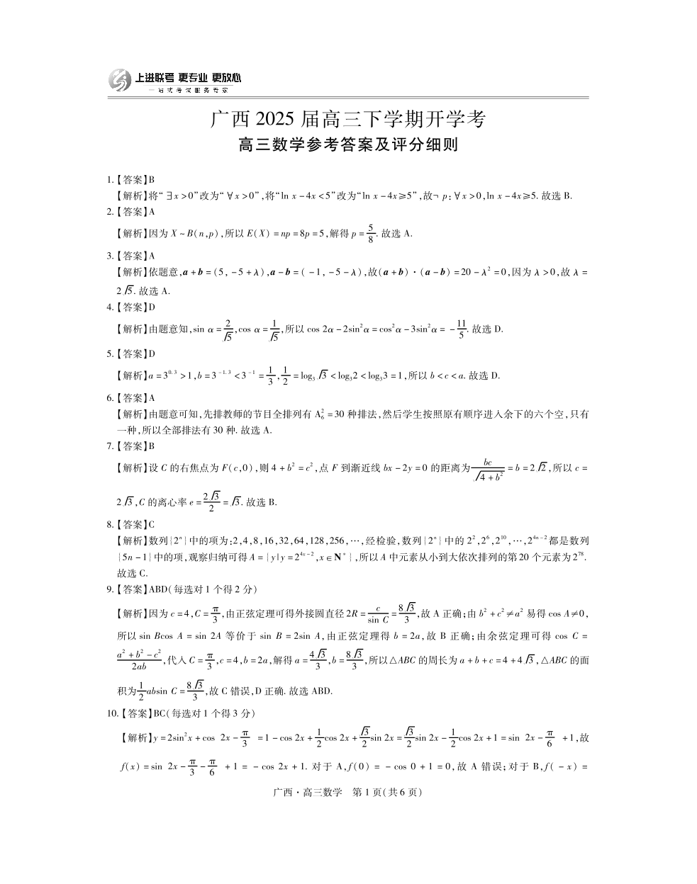 广西壮族自治区上进联考2025届高三春季开学考 数学答案.pdf
