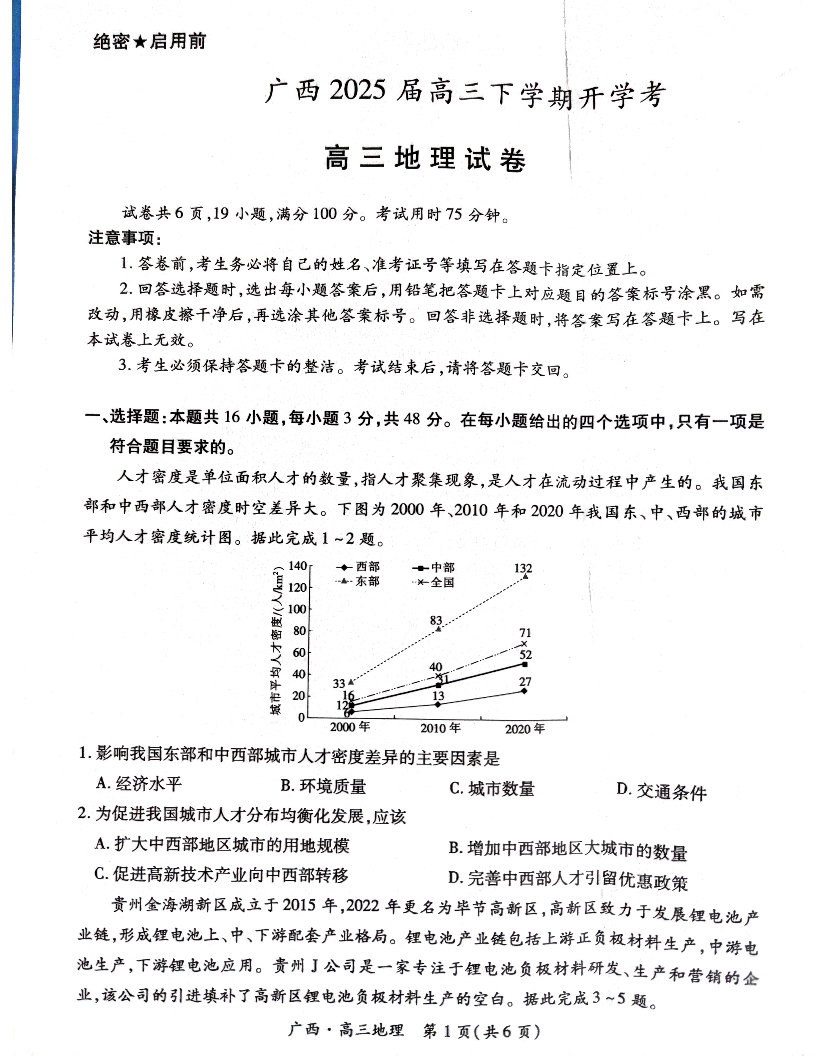 广西壮族自治区上进联考2025届高三春季开学考 地理.pdf