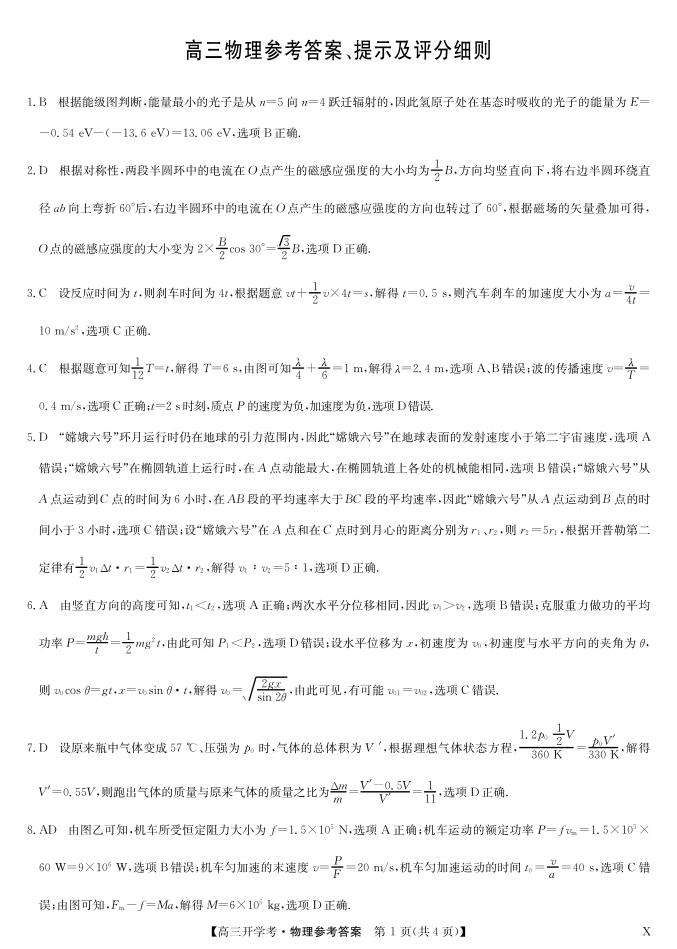 九师联盟2025届高三下学期2月开学考试 物理答案.pdf